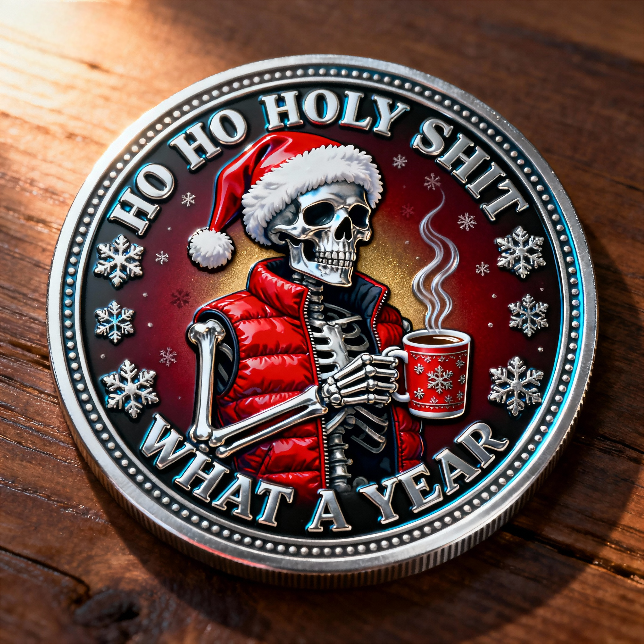 Not your average Christmas cheer — this “Merry AF” Skeleton Coin is made for those who’ve survived another wild year and still manage to smile (or at least fake it 😎).